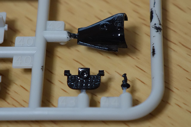 戦闘機のモデルは彩色しながら組み立てていくのですが、もちろん初心者の私はエアスプレーなどというものは持っていません。ですので筆でちまちま塗っていきます。最初は塗るときの手のやり場に困ったのですが、いっそのことランナーについたまま塗ってしまえと、まずは塗装、乾燥したら切り離し、仕上げに切り離した後にちょんちょんと再度塗装という手順でやってみることにしました。