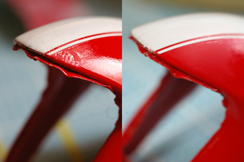 クリアも乾燥した後、デカールの合わせ目が重なっている部分が気になります。