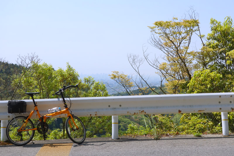 登っている最中は自分の呼吸音と鳥のさえずり、春の風の音しか聞こえません。時折後方から車がやってきて抜き去っていきます。頭上からは新緑の木洩れ日、眼下には季節柄シャガの群生が覗いたりして気持ち良いです。